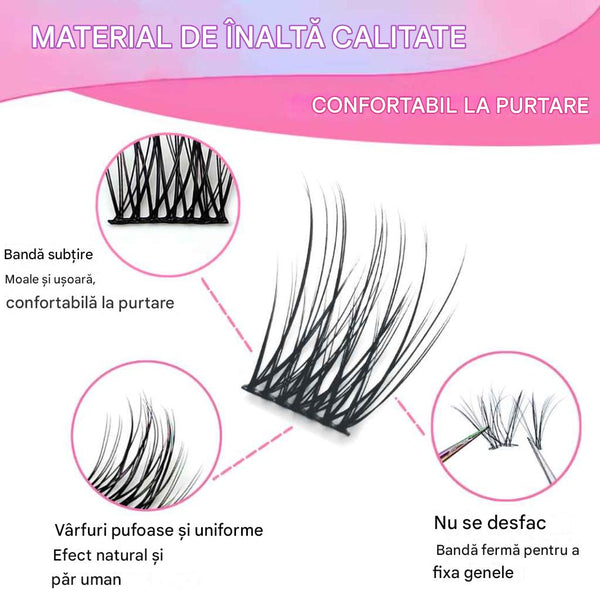 Kitul combină cluster-e versatile, lipici și pensetă pentru aplicare ușoară și un look natural, gata pentru orice ocazie.